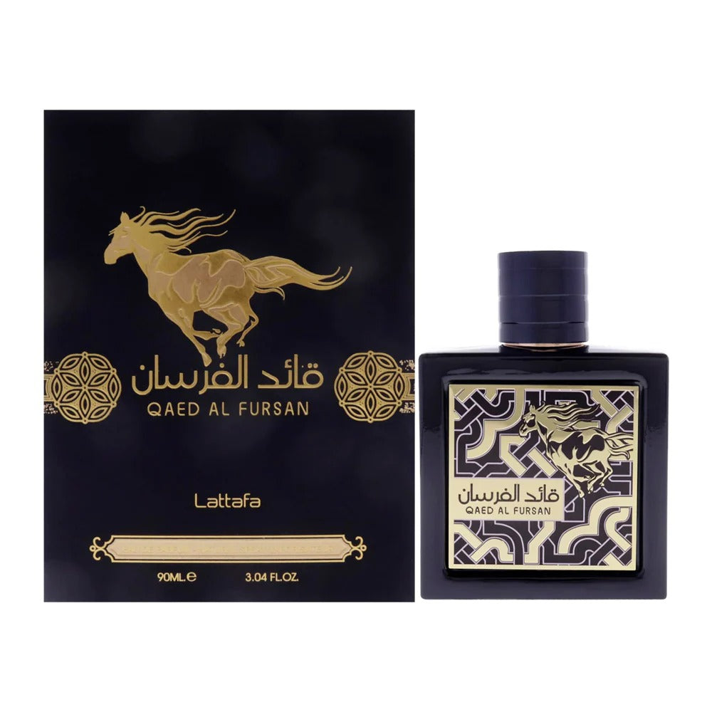 Launched in 2016, Lattafa Qaeed Al Fursan is a bold unisex fragrance that combines fruity sweetness with smoky and woody undertones. It opens with a juicy burst of pineapple and saffron, creating a vibrant and exotic introduction. The heart reveals a blend of jasmine and balsamic notes, while the base is rich with agarwood (oud), cedarwood, and amber. Powerful, seductive, and long-lasting—perfect for special occasions and cooler seasons.