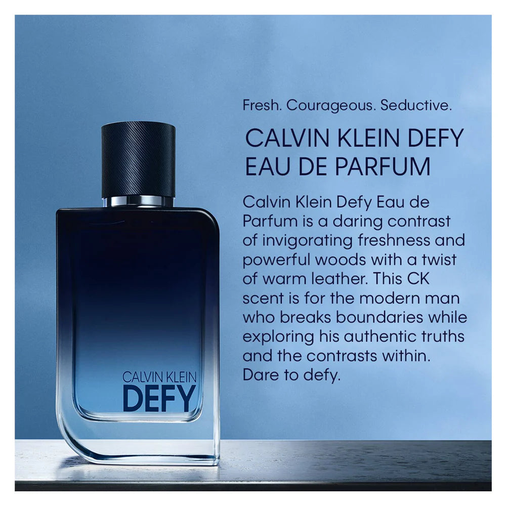 Strong, sleek, and unapologetically modern—Calvin Klein Defy Eau de Parfum is a declaration of daring masculinity.